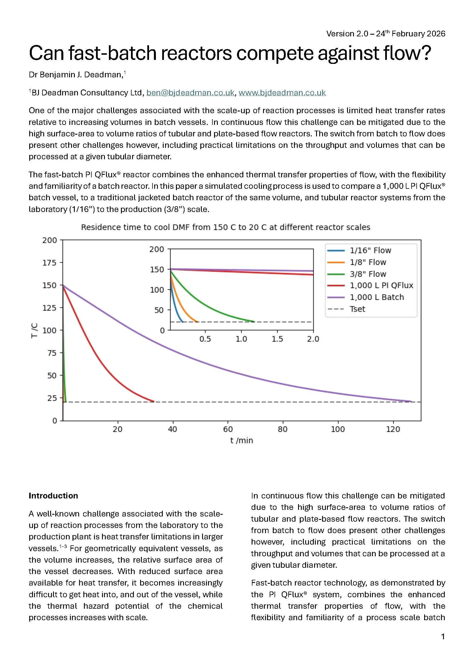 Dr. Benjamin J. Deadman’s fifth white paper highlights how the PI QFlux® fast-batch reactor overcomes the heat transfer limits that traditionally slow scale-up.
